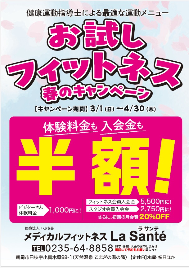 春のお試しフィットネス、入会金半額キャンペーン